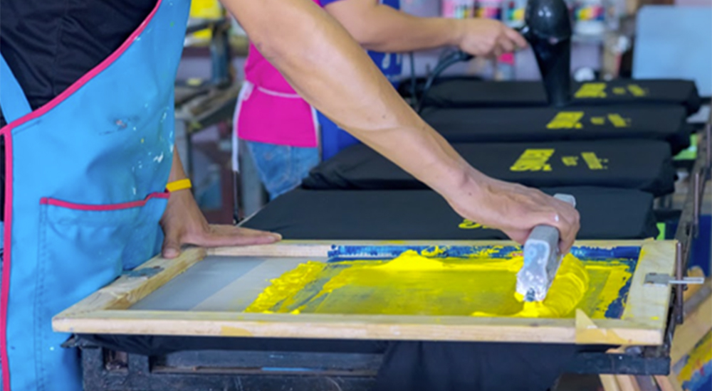 Screen printing is a technique where ink is applied to a substrate through a mesh screen that has been prepared with a stencil of the desired design. Each color in the design requires a separate screen, and the ink is pushed through the mesh onto the material using a squeegee. This method is widely used for producing vibrant and long-lasting prints on textiles, posters, and other surfaces. It's particularly cost-effective for large orders due to the efficiency of the process once the screens are created.