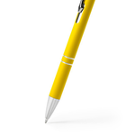 Ball pen with soft touch metal body and pusher with anodized finish. Tip, clip and details in chrome plated metal. Jumbo refill in black ink.